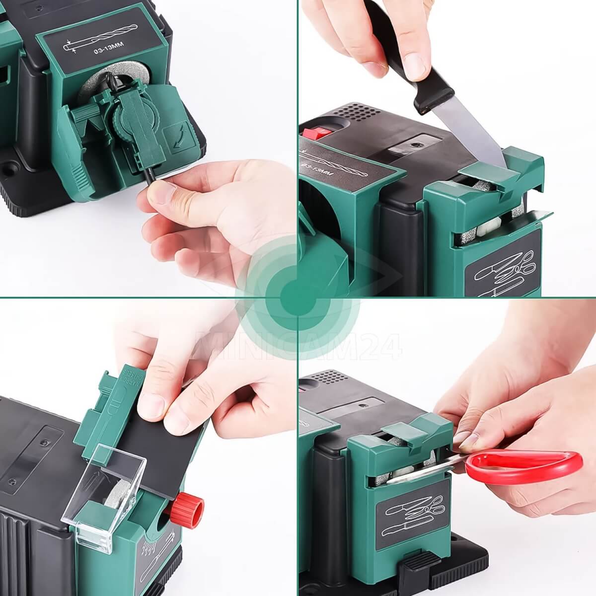 Настольная электрическая точилка предназначена только для заточки металлических ножей, ножниц, стамесок и сверл по металлу. Процесс заточки не займет много времени, а ножи долго останутся острыми. Точильный камень оборудован удобными противоскользящими ножками. Точилка имеет компактный размер и малый вес, она изготовлена из качественного пластика и металла, обладает низким уровнем шума.